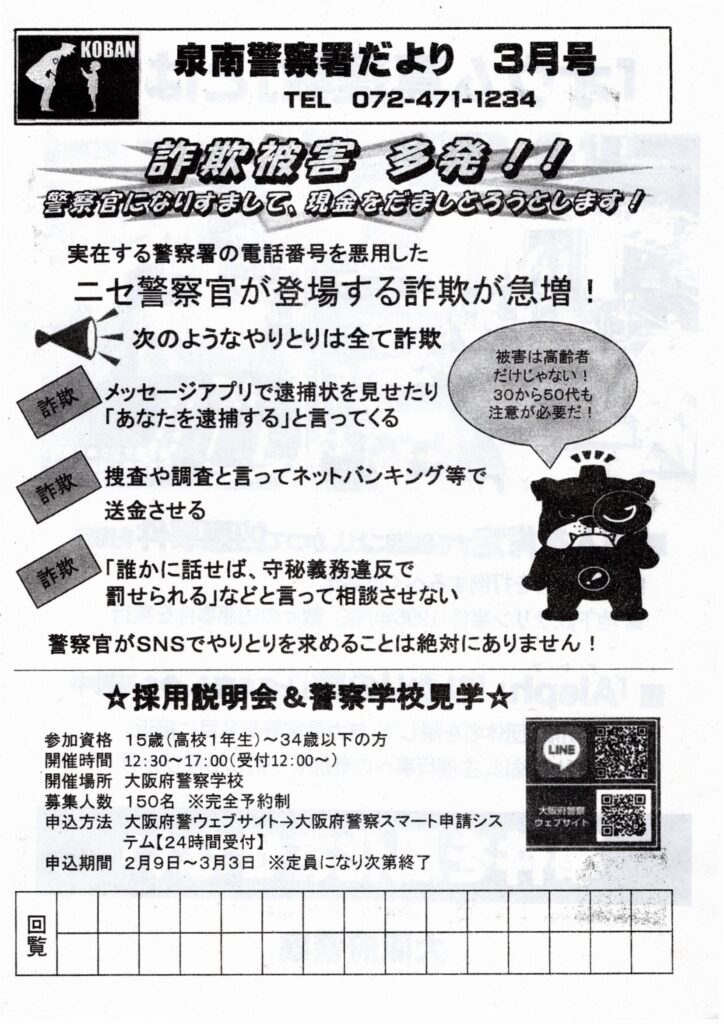 泉南警察署だより 3月号