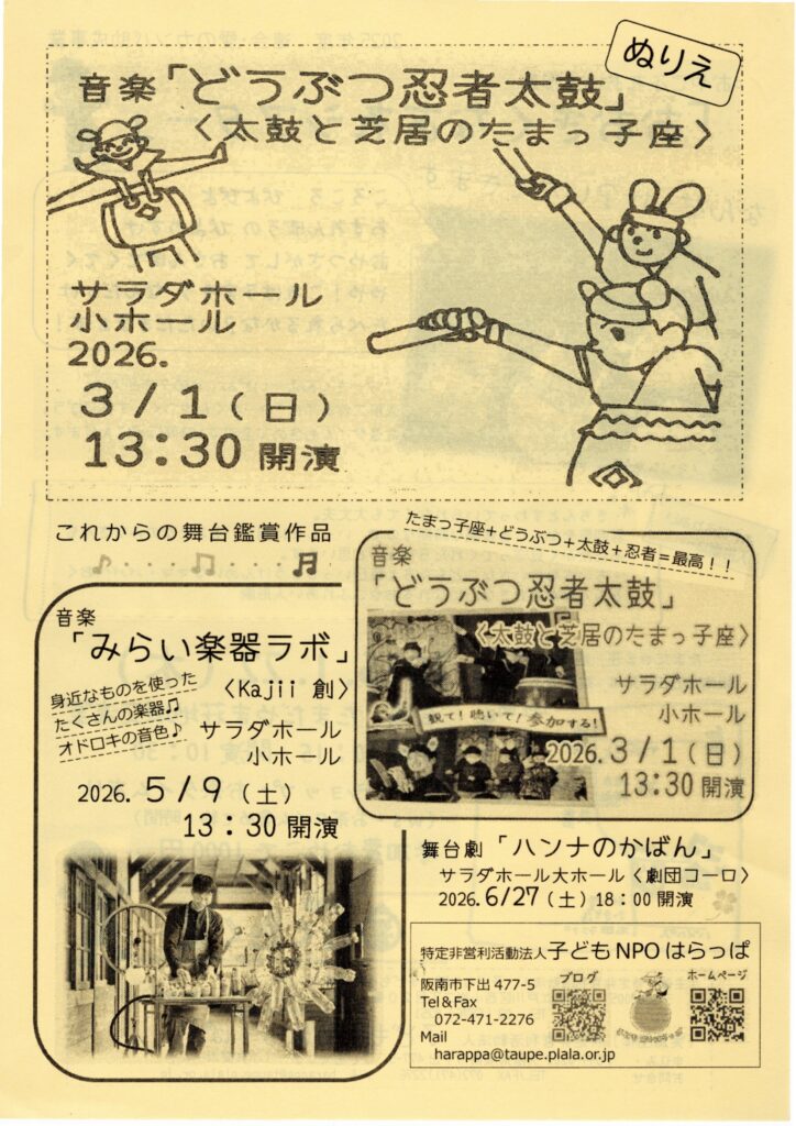 【申込み・お問合せ】〒599-0202 大阪府阪南市下出477-5 こどもセンター(ふれ愛ホーム)