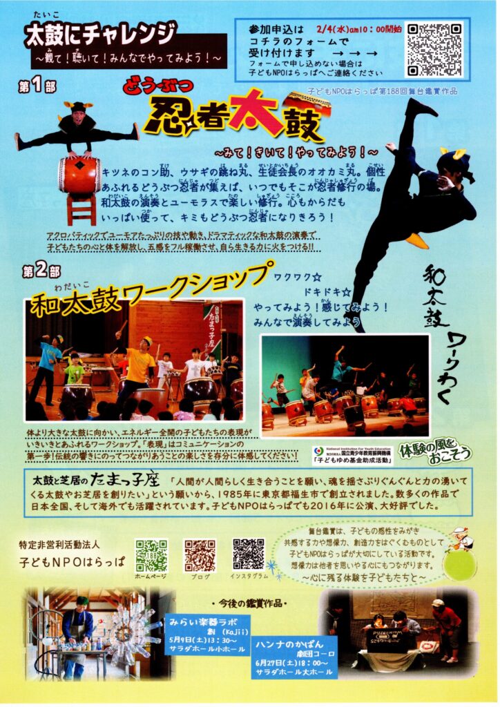 *第1部:どうぶつ忍者鼓太鼓 (太鼓と芝居のたまっ子座)