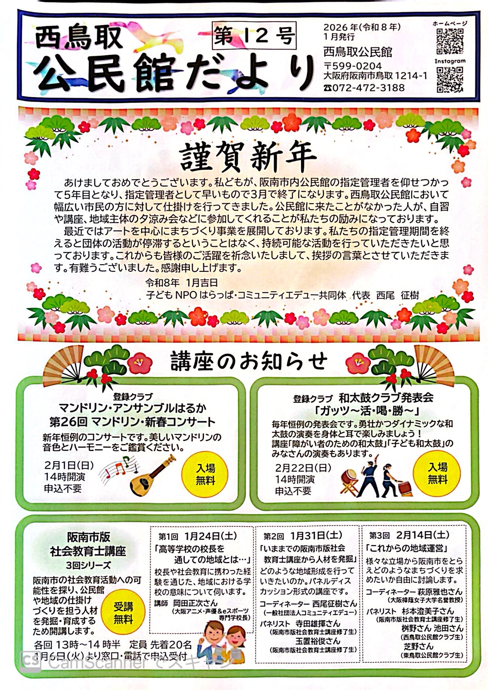 第12号西鳥取公民館だよりが西鳥取公民館さんより刊行されました!