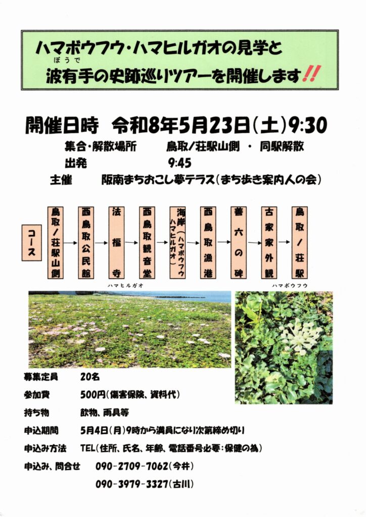 ハマボウフウ・ハマヒルガオの見学と波有手の史跡巡りツアーを開催!!