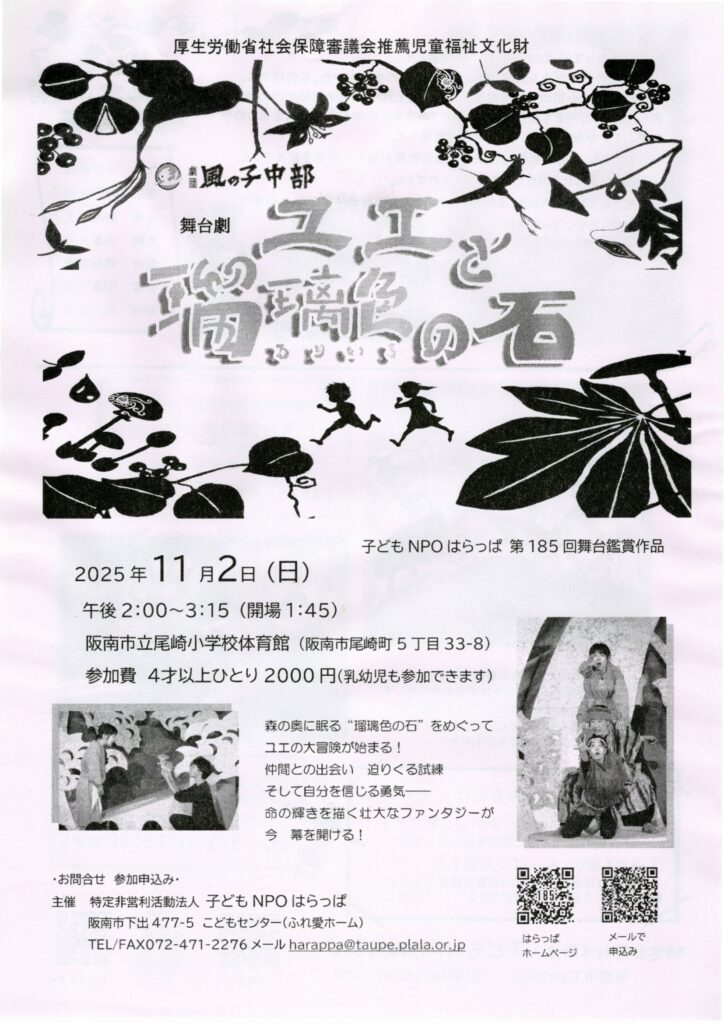 子どもNPOはらっぱ 第185回舞台鑑賞作品【ユエと瑠璃色の石】  11月2日(日)