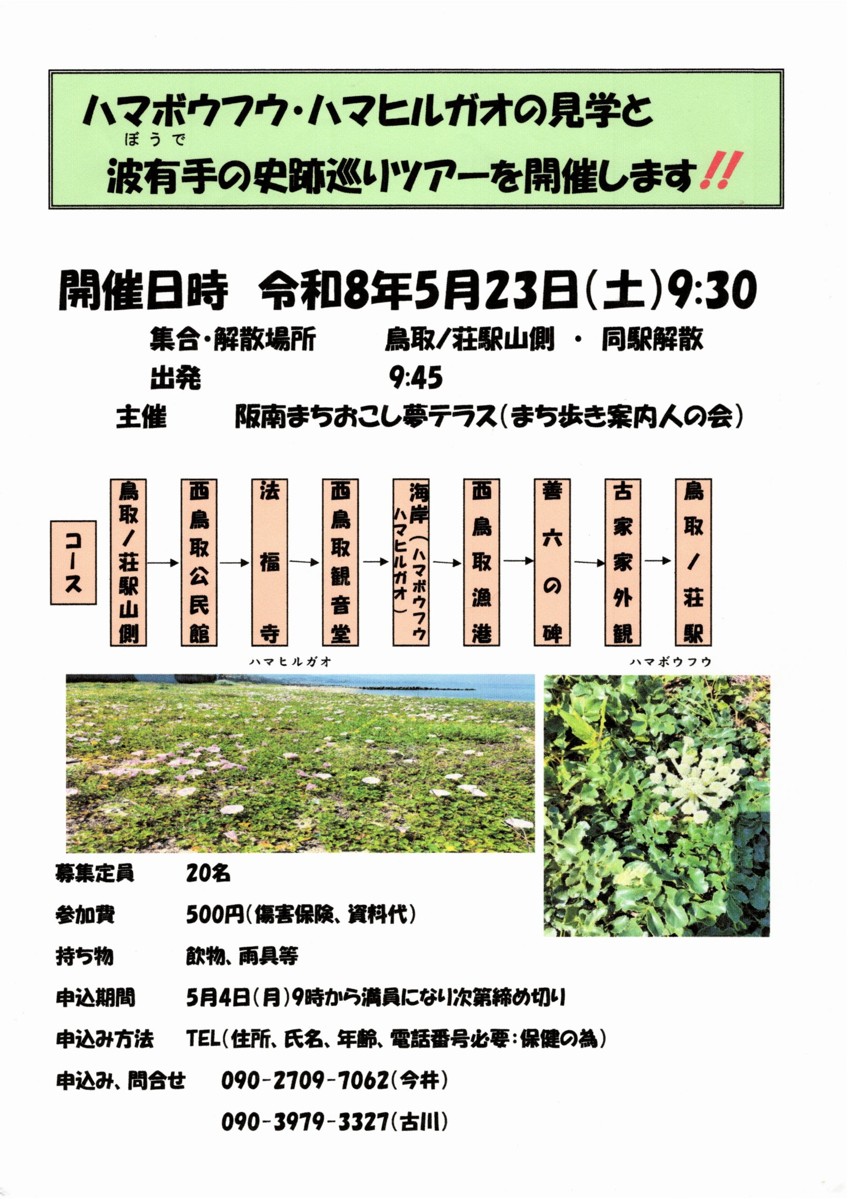 申込み・問い合わせ 090-2709-7062(今井) 090-3979-3327(古川)